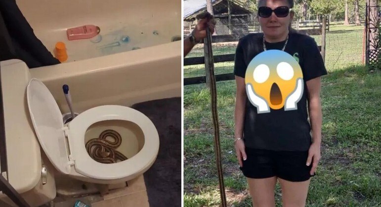 Mulher distraída urina sobre cobra escondida em vaso sanitário